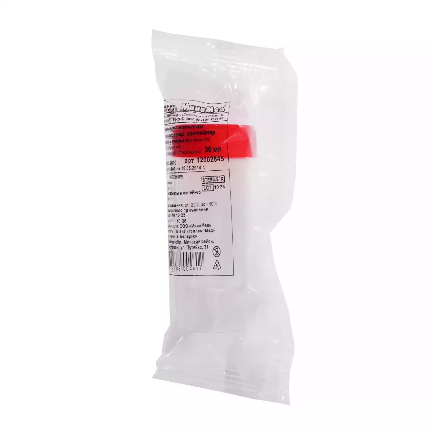 Контейнер 30мл, для взятия биоматериала, стерильный, с завинчающейся крышкой, без шпателя, индивидуальная упаковкаЛитопласт-Мед УП (БЕЛАРУСЬ)