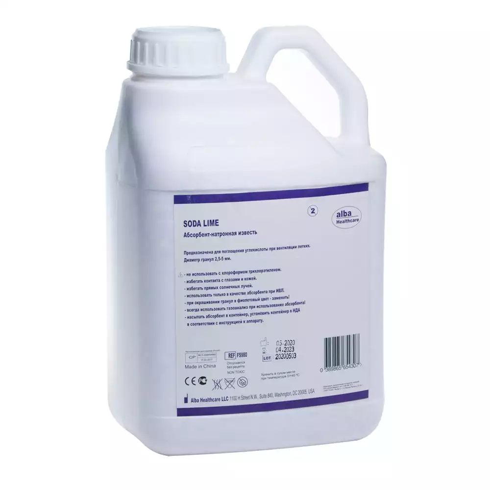 Абсорбент медицинский (натронная известь) Alba цветоиндикация - белый-фиолетовый, объем 5л/4.5 кгAlba Healthcare LLC