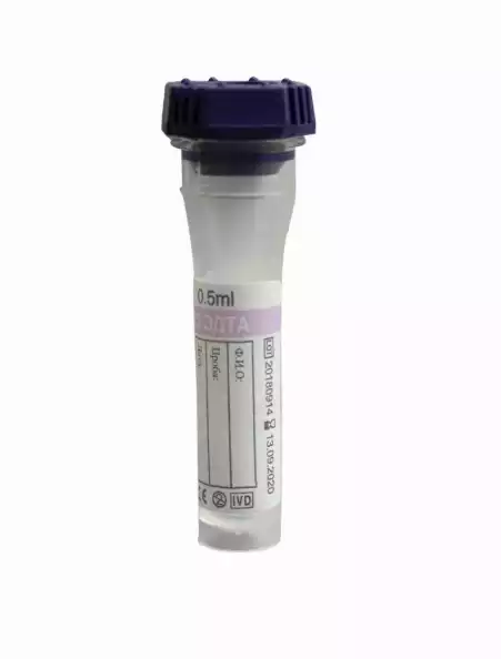 Пробирка для забора капиллярной крови (ЭДТА К3), объем пробирки 0,5 мл, с вложенным капилляром. Объем забираемой крови 0,5 мл., Zhejiang Gongdong Medical Technology Co, Ltd. (КИТАЙ), 100 шт