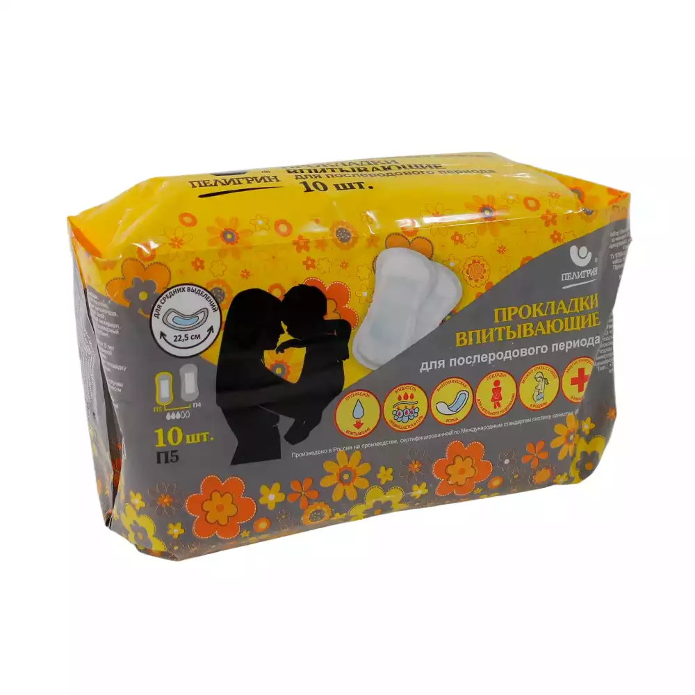 Прокладки женские впитывающие Пелигрин normal (послеродовые), упаковка 10 шт, впитываемость 270млПелигрин Матен