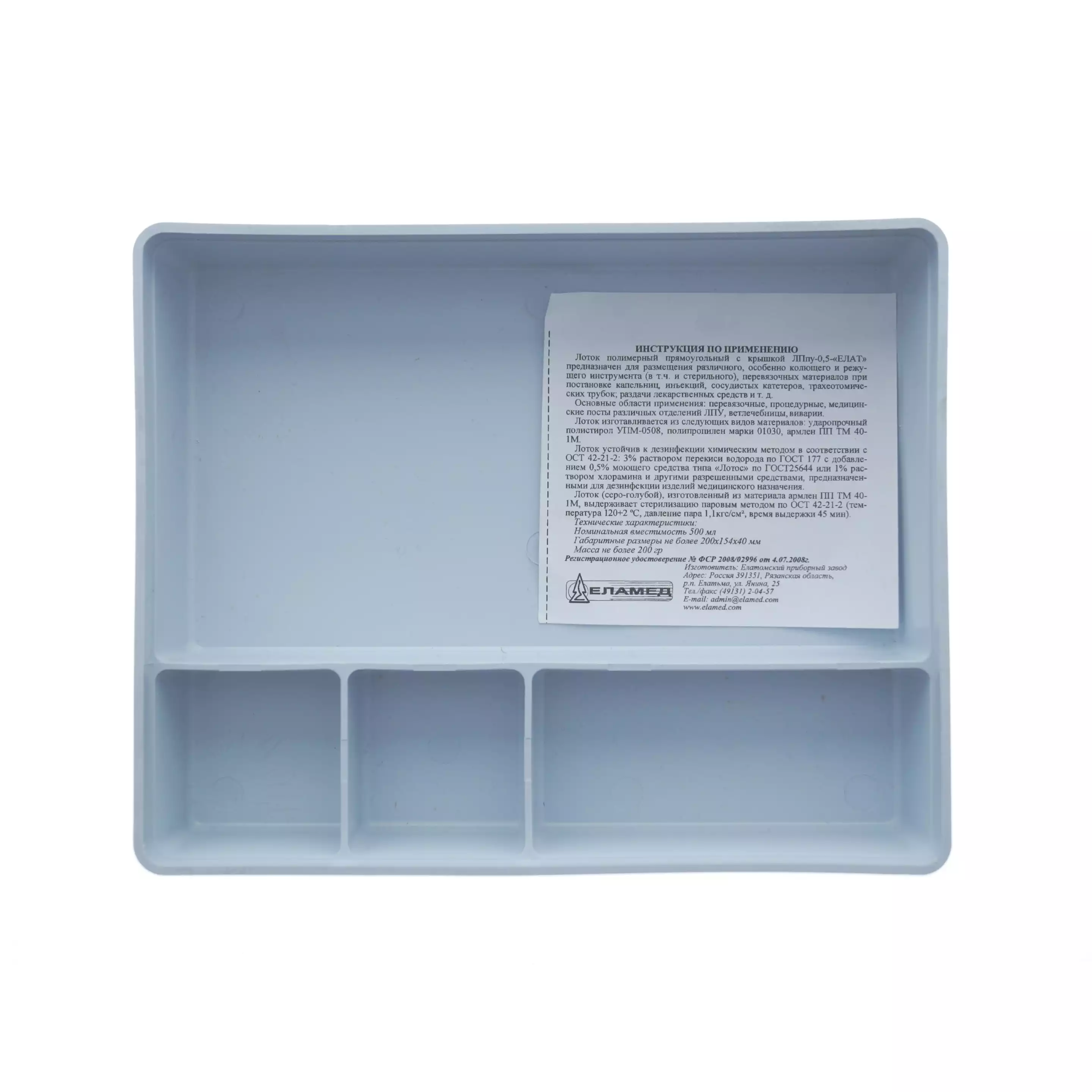 Лоток Лппу -0,85А - ЕЛАТ прямоугольный, размер 250*190*48мм, с крышкой и ячейками, автоклавируемый, полимерныйЕПЗ АО (РОССИЯ)
