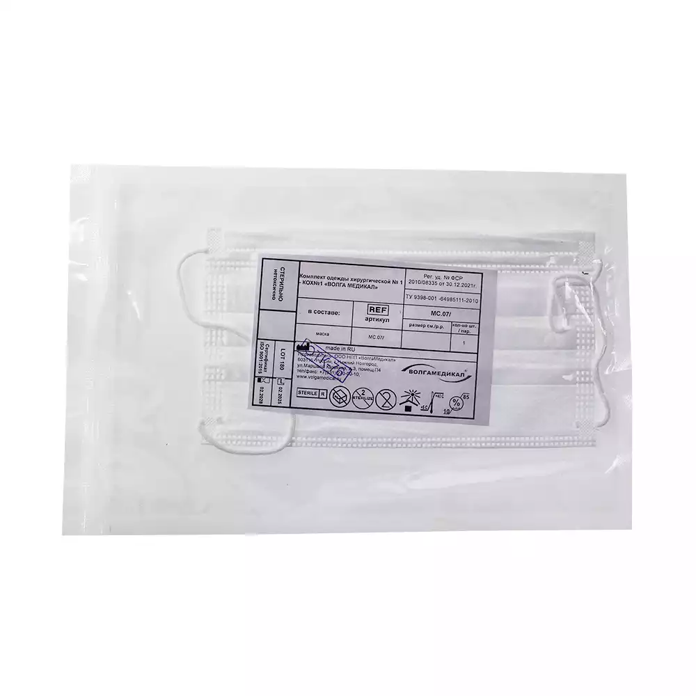 Маска медицинская 3-х слойная, с носовым фиксатором 10см, на резинке, стерильная, голубая, инд.упакВолга Медикал НПП (РОССИЯ)
