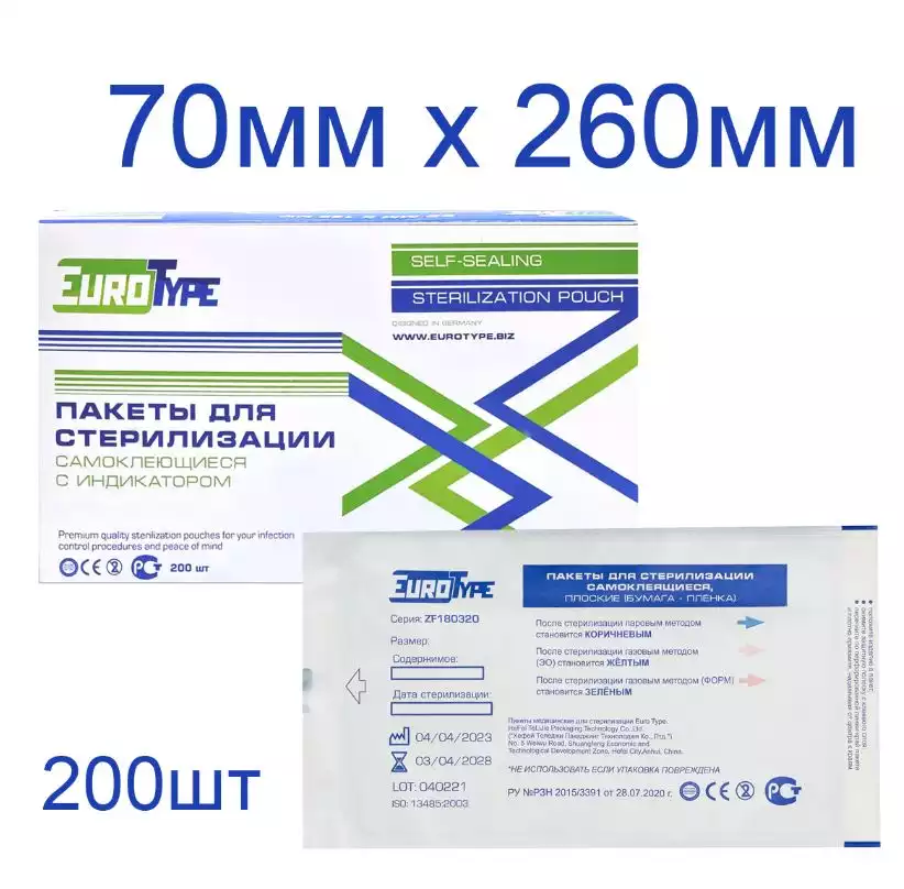 Пакет для стерилизации комбинированный самоклеящийся EUROTYPE 70х260 мм (200 шт/упак)HeFei TeLiJie Packaging Technology Co., Ltd. (КОРЕЯ, РЕСПУБЛИКА)