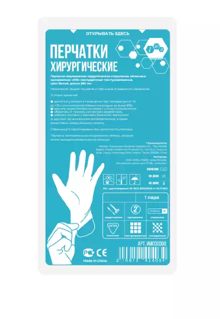 Перчатки IMS хирургические, размер 8,0 латексные неопудренные текстурированные, стерильные, упаковка 50 парZhonghong Pulin Medical Products Co., Ltd (КИТАЙ)
