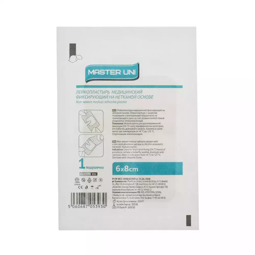Пластырь Master Uni нетканный, для фиксации внутривенных катетеров, размер 6*8см, в виде штанишек, с подушечкой, Pharmline s.r.o. (КИТАЙ), 50 шт