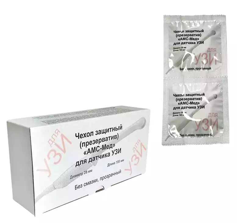 Чехол защитный (презерватив) "АМС-Мед" для датчика УЗИ модель 1 (длина 195 мм, диаметр 28 мм.) в полиэтиленовом пакетеООО АМС-Мед (РОССИЯ), 100 шт