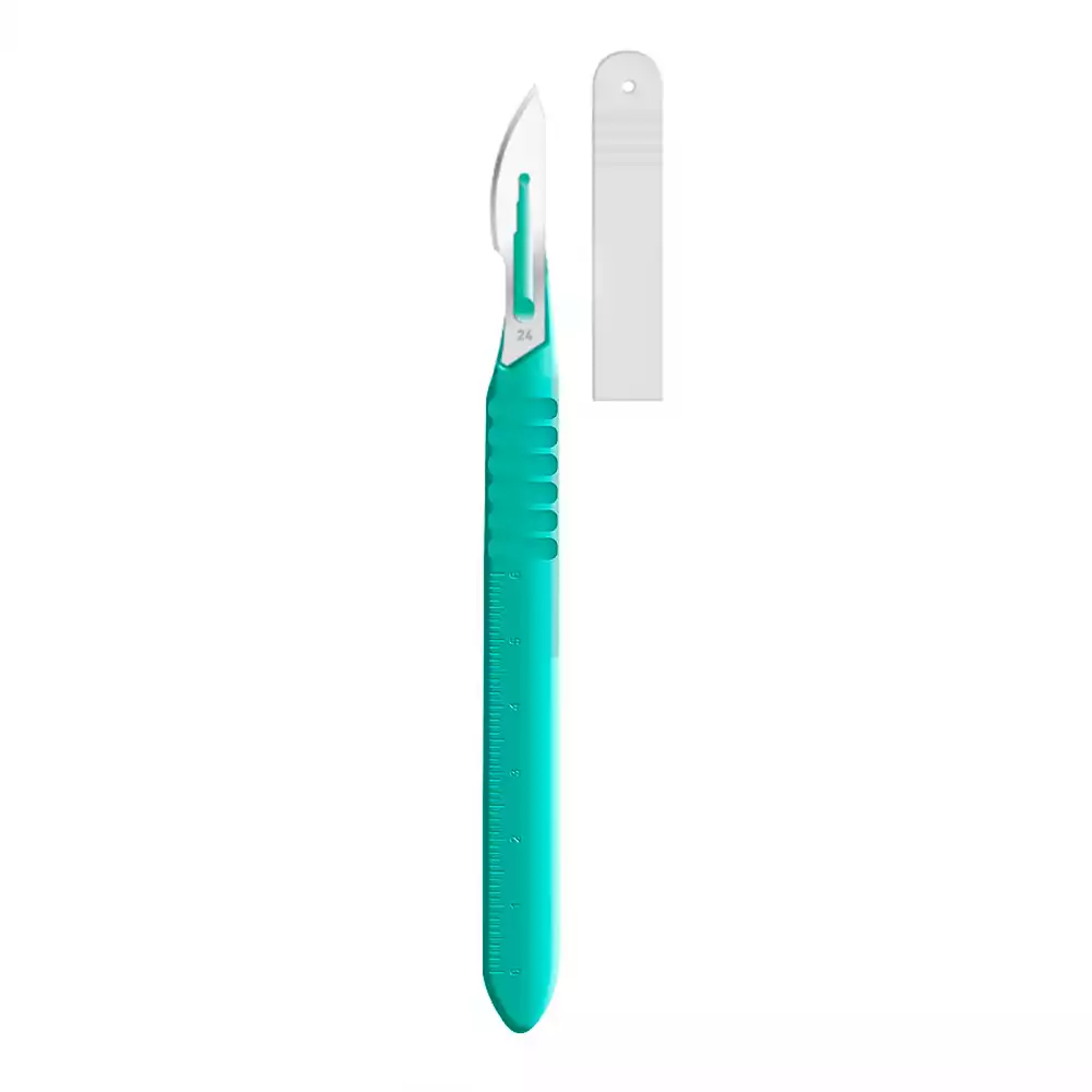 Скальпель VOLKMANN №24 с пластмассовой ручкой, полостной, остроконечный, нержавеющая сталь, одноразовый, стерильныйVolkmann Medizintechnik GMBH. Germany (ИНДИЯ)
