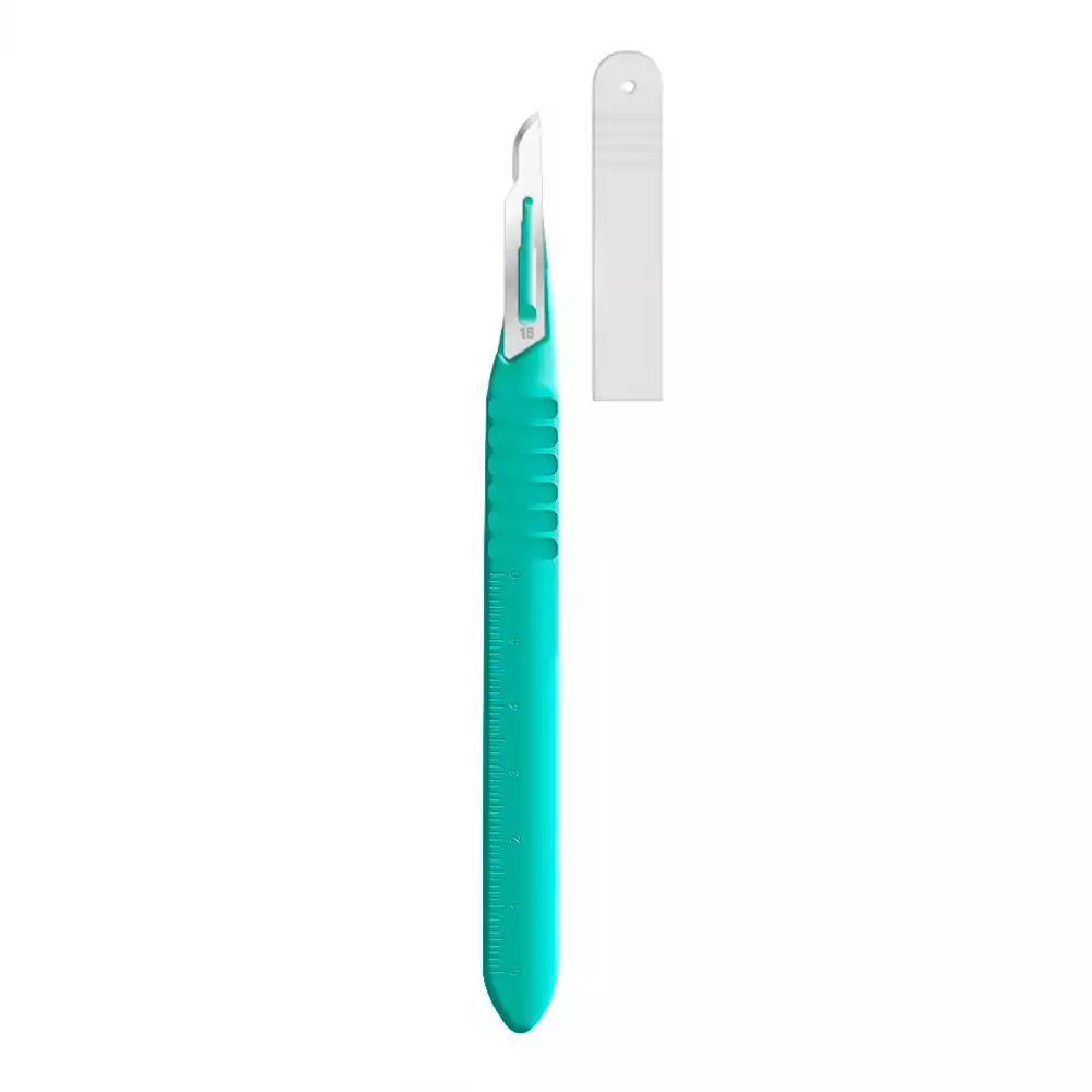 Скальпель VOLKMANN №15 с пластмассовой ручкой, остроконечный брюшистый, нержавеющая сталь, одноразовый, стерильныйVolkmann Medizintechnik GMBH. Germany (ИНДИЯ)