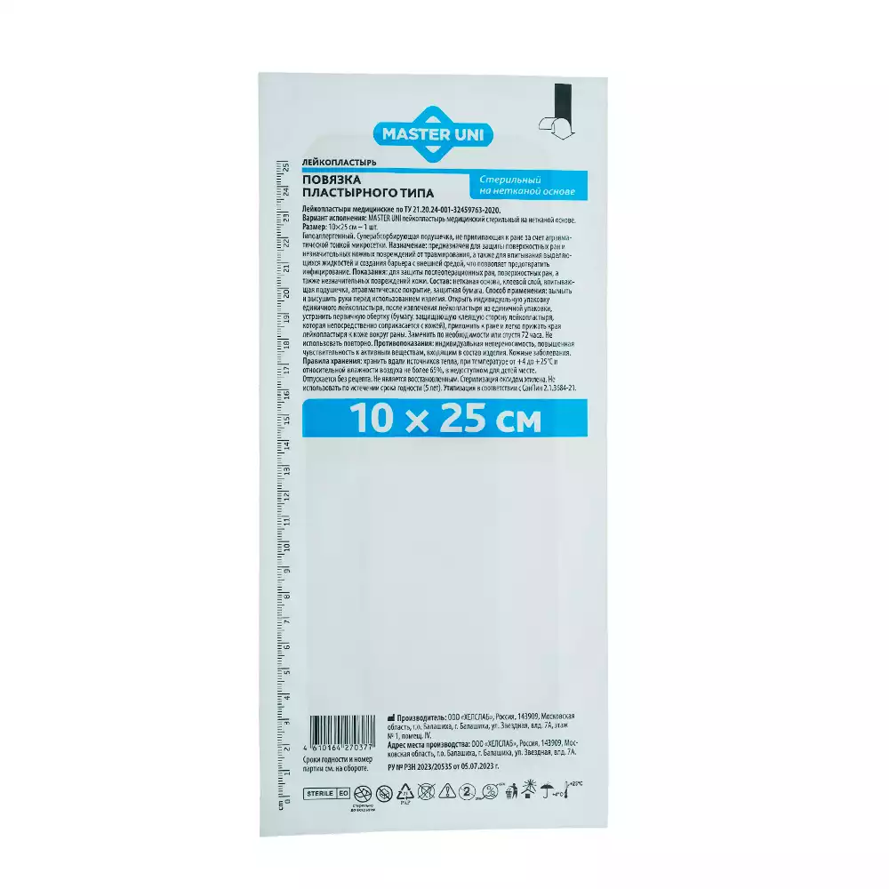 Повязка Master Uni нетканная, размер 10,0*25,0см, стерильнаяООО "ХЕЛСЛАБ" (РОССИЯ)