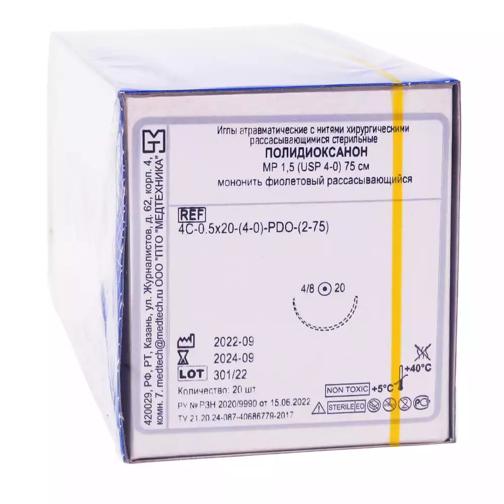 Полидиоксанон мононить USP 4/0 (МР1,5), длина нити 75см, 4C-0,5x20-(4-0)-PDO-(2-75) цвет фиолетовыйМедтехника ПТО (РОССИЯ)