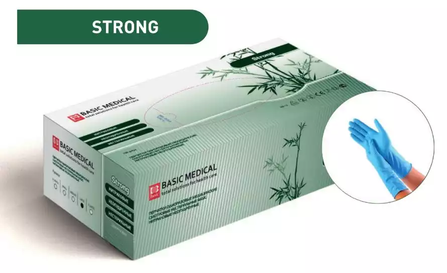 Перчатки Basic Strong, размер M, нитриловые,повышенной прочности: вес 13,0 г/пара, неопудренные, текстурированные на пальцах, удлиненная манжета, цвет белый, нестерильные, упаковка 50 парIntco Industries Co Ltd (КИТАЙ)