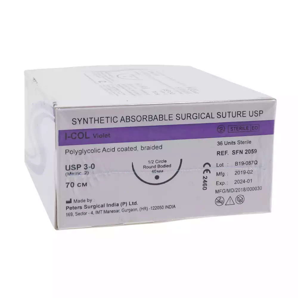 Ай- кол 3/0 (2), длина нити 70см, игла 1/2 круглая колющая 40мм, упаковка 36шт, SFN2059Peters Surgical (ИНДИЯ)