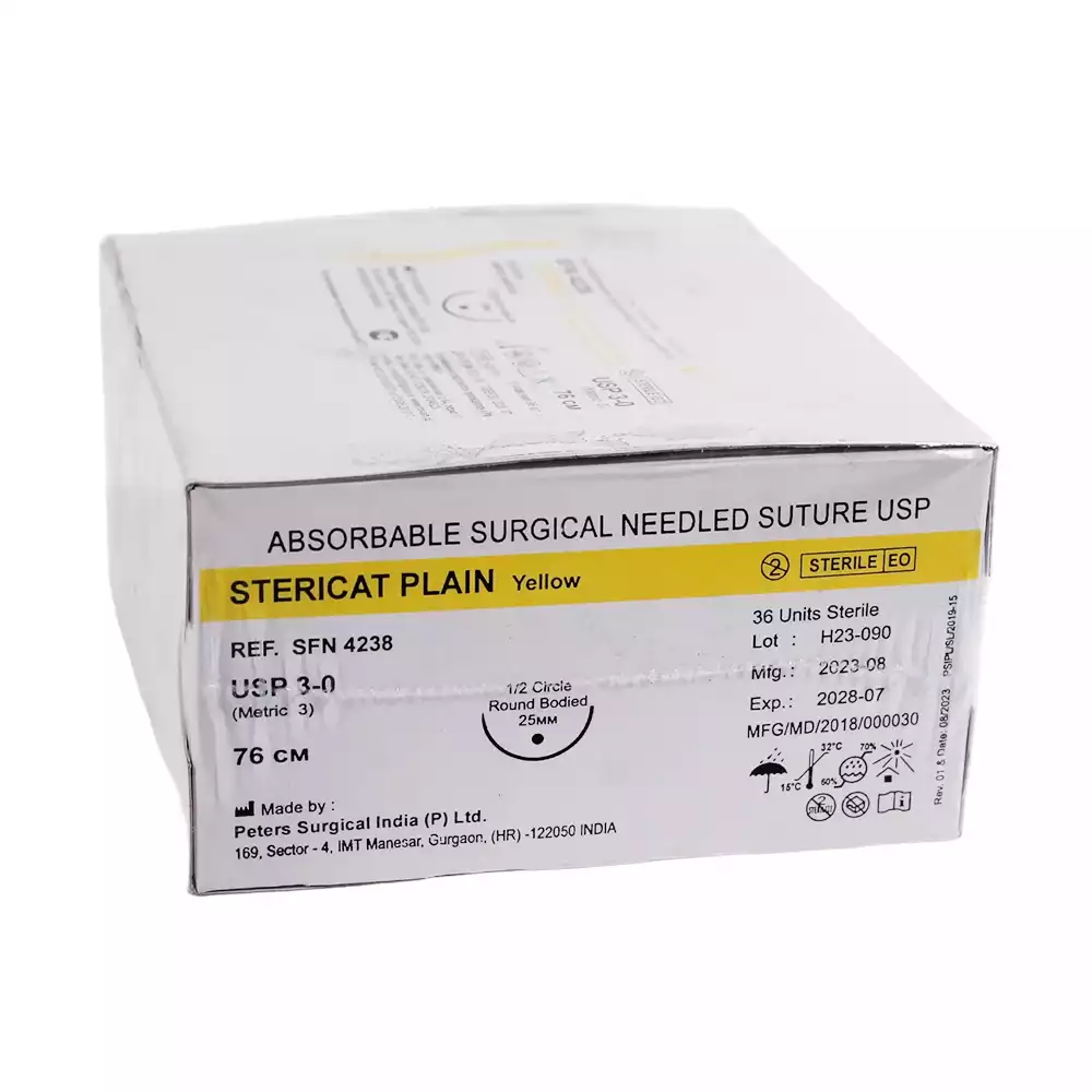Стерикат 3/0 (3), длина нити 76см, игла 1/2 круглая колющая 25мм, упаковка 36шт, SFN4238Peters Surgical (ИНДИЯ)