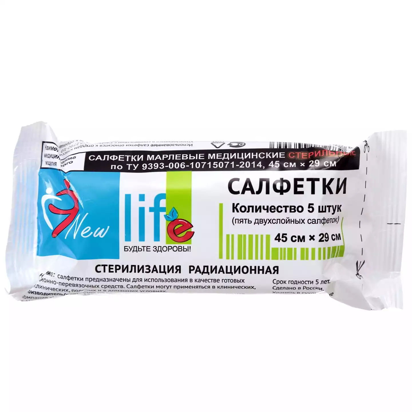 Салфетка марлевая №5, 2-х слойная размер 45*29см Лайф, плотность 32г/м2, стерильнаяНавтекс ХБК (РОССИЯ)
