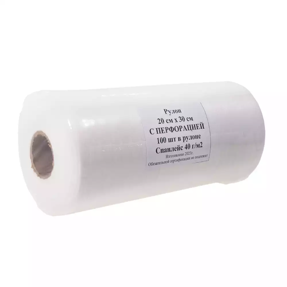 Рулон гигиенический, размер салфетки 20х30см, материал спанлейс 40г/м2, перфорацией №100, белыйЭстетика (РОССИЯ)