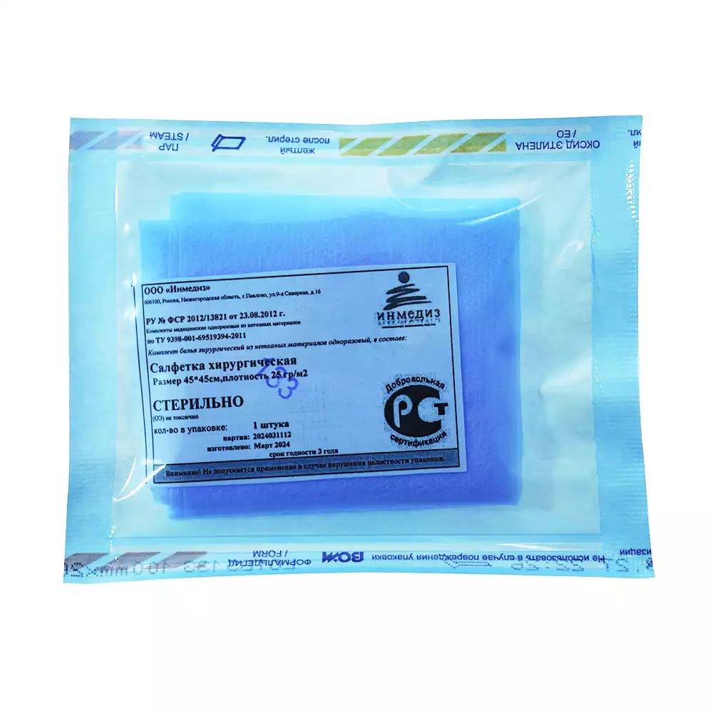 Салфетка 45*45см, материал СМС 25г/м2, стерильная, цвет голубойИнмедиз (РОССИЯ)