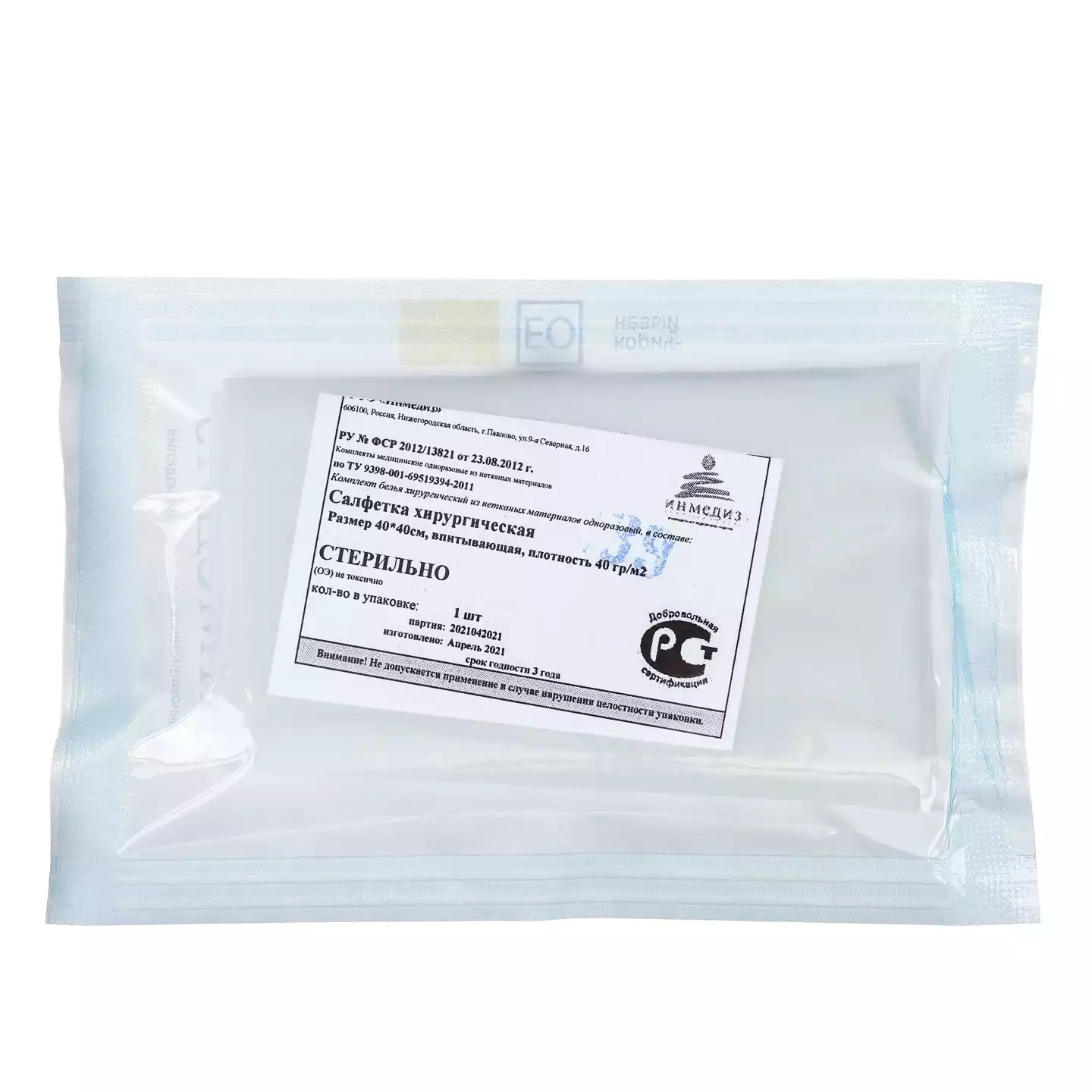Салфетка 40*40см, материал спанлейс 40г/м2, стерильная, белаяИнмедиз (РОССИЯ)