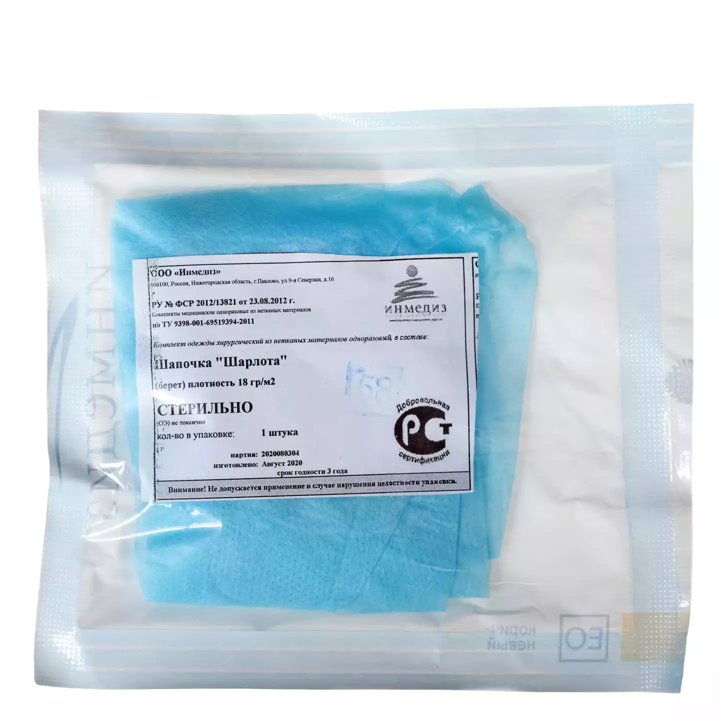 Шапочка-колпак, высота 18см, спанбонд 42г/м2, на завязках, р. 54-62, стерильная, цвет голубойГекса-нетканые материалы (РОССИЯ)