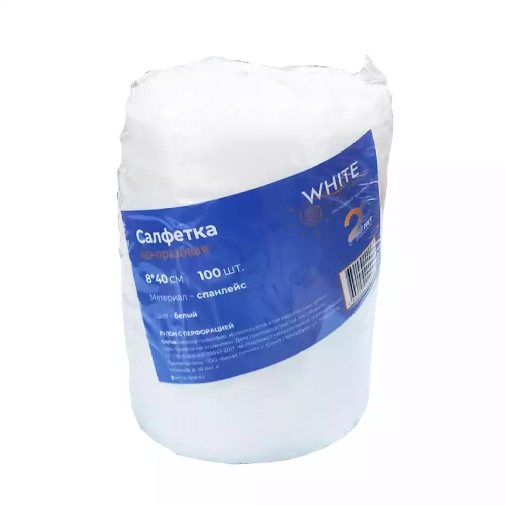 Воротничок (салфетка) размер 8*40см, материал Спанлейс 40г/м2, рулон с перфорацией, 100штБелая линия (РОССИЯ)