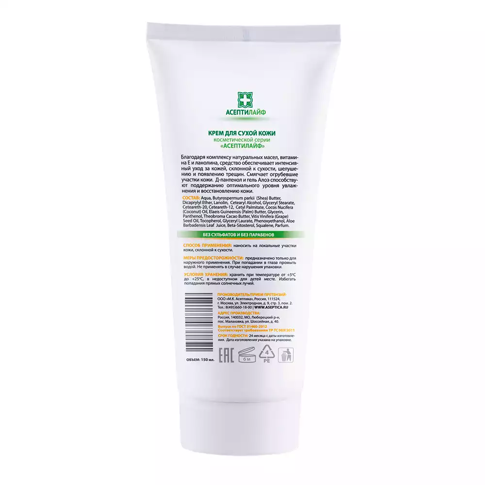 Крем "АсептиЛайф" для сухой кожи "Тройной эффект", туба 150мл
