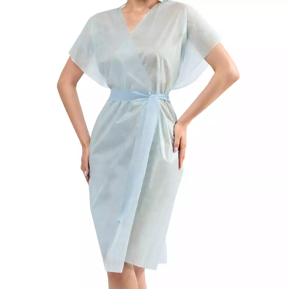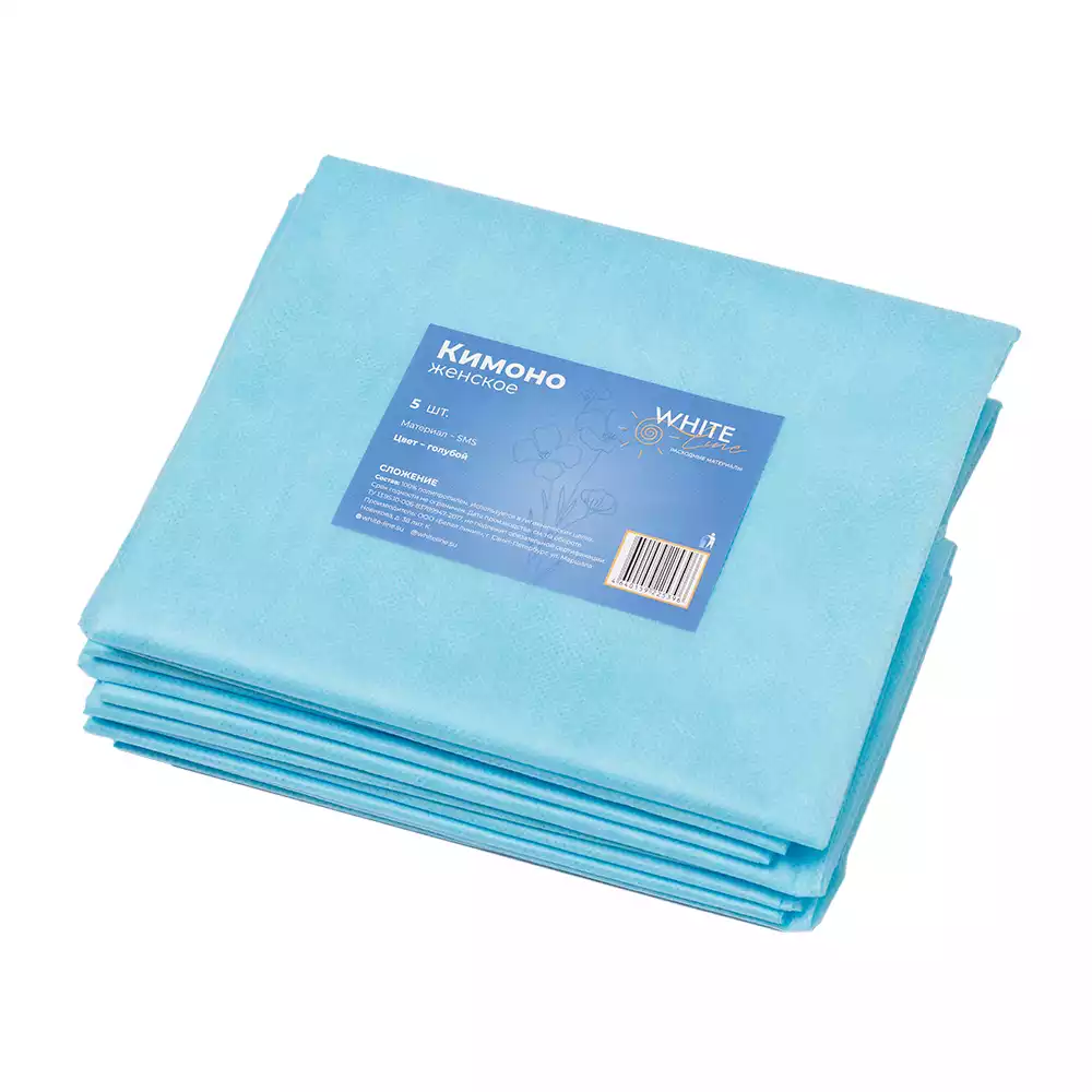 Халат для посетителей (кимоно) с запахом, рукав 3/4, материал спанбонд 17г/м2, нестерильный, размер 100см*140см, цвет синий, упаковка 5шт