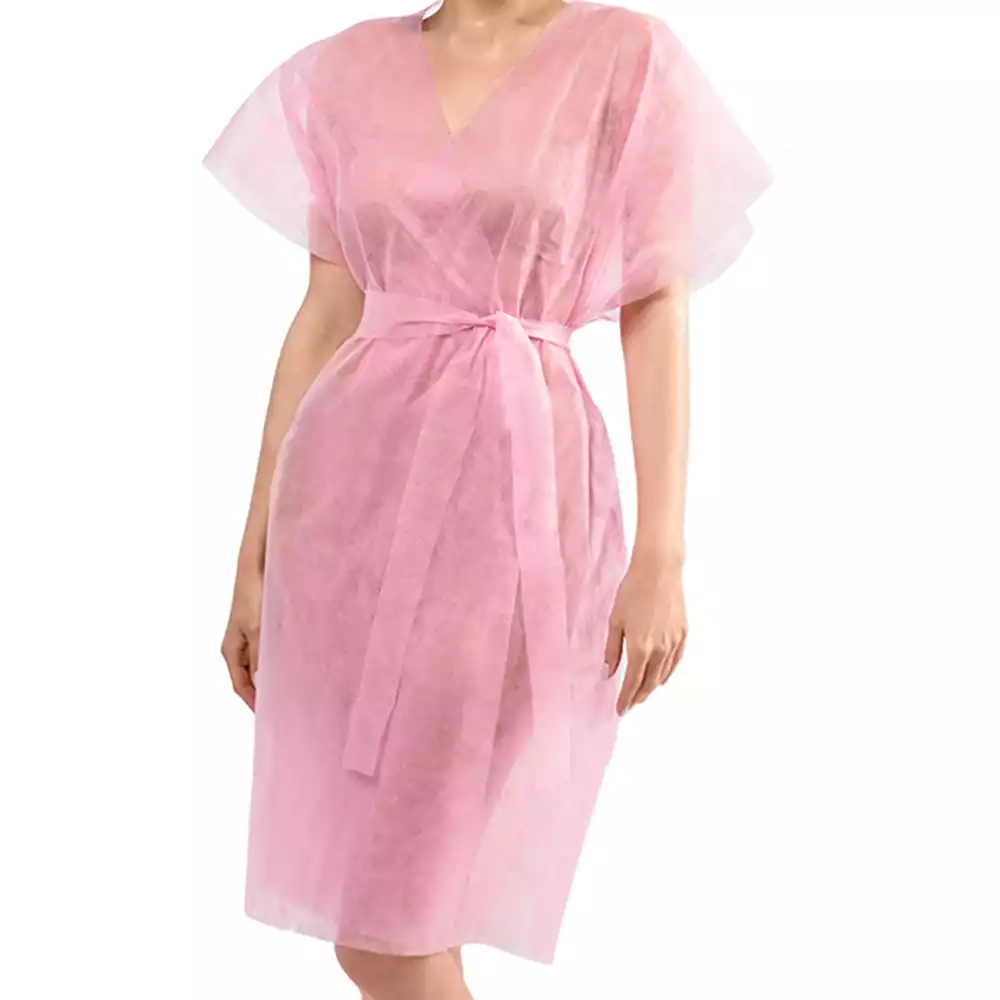 Одноразовый халат - кимоно для использования в медицинских центрах и косметологических салонах при проведении процедур. Материал спанбонд 17г/м2, цвет - розовый, нестерильный.