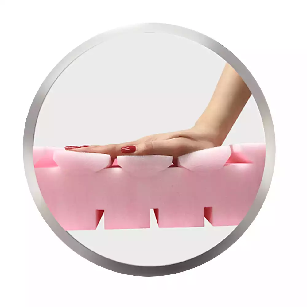 Матрац изготовлен из эластичного пенополиуретана марки А со специальным трапециевидным профилем, с эффектом "воздушной подушки", который способствует лучшему распределению давления на тело пациента, снизу поперечный профиль, придающий матрацу гибкость и способность принимать форму 2-3-4-секционной кровати. Влагонепроницаемый съемный чехол матраца изготовлен из синтетической ткани (полиэстер 100%) плотность 150 г/м² с влагонепроницаемым полиуретановым покрытием. На чехле по центру торцевой части вшита молния.