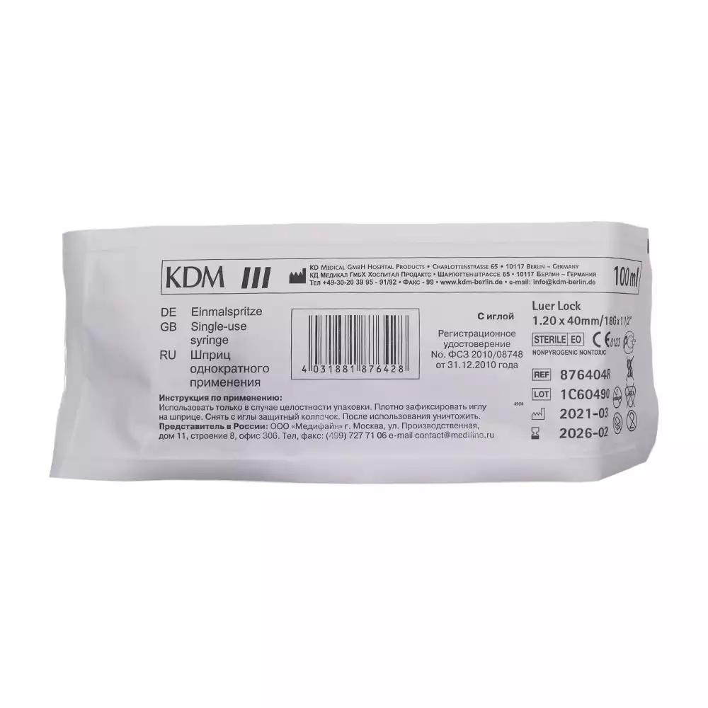 Шприц 100,0мл, 3-х компонентный, игла 18G (1,2*40мм) рядом, соединение Луер Лок, стерильный