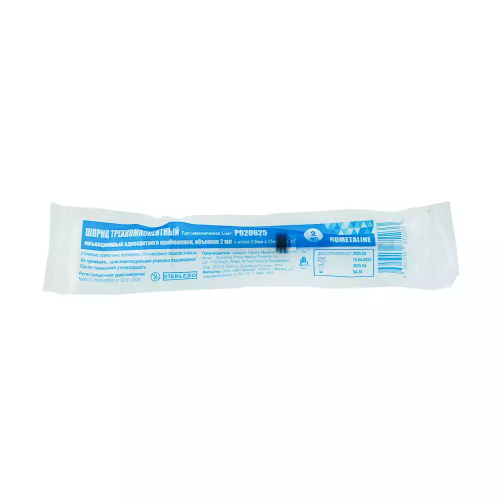 Шприц КОМЕТА 2,0мл, 3-х компонентный, игла 23G (0,6х25мм), стерильный., 100 шт